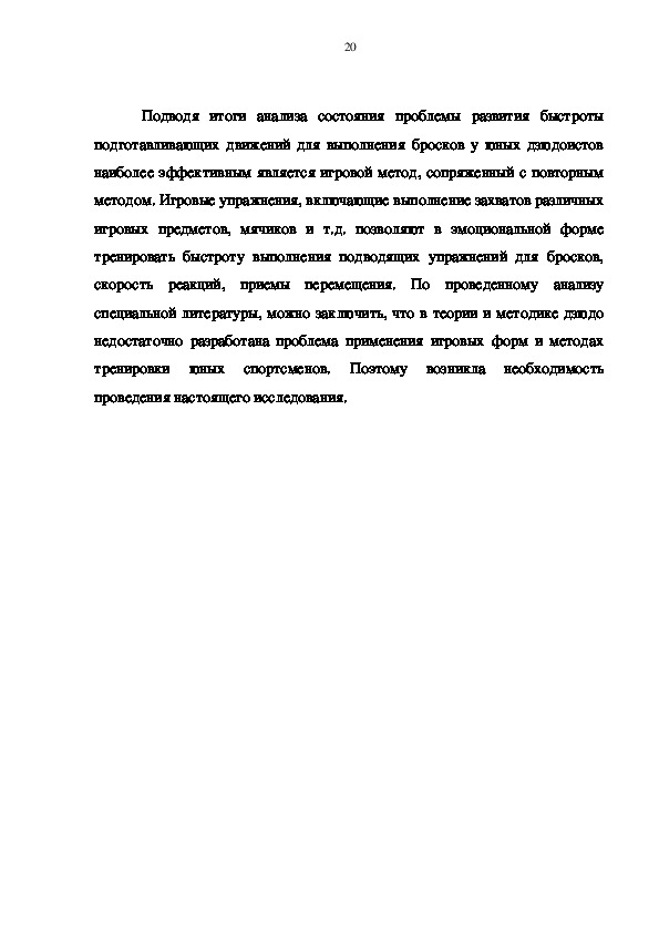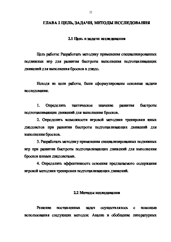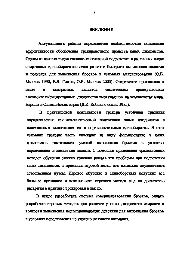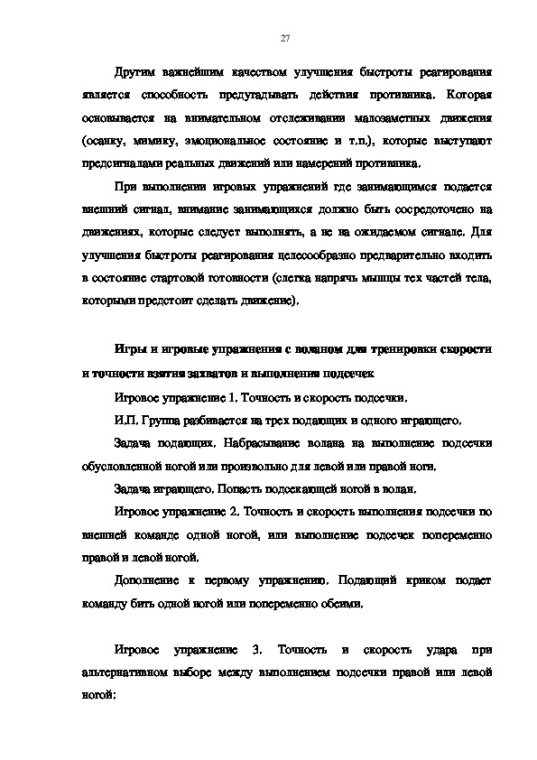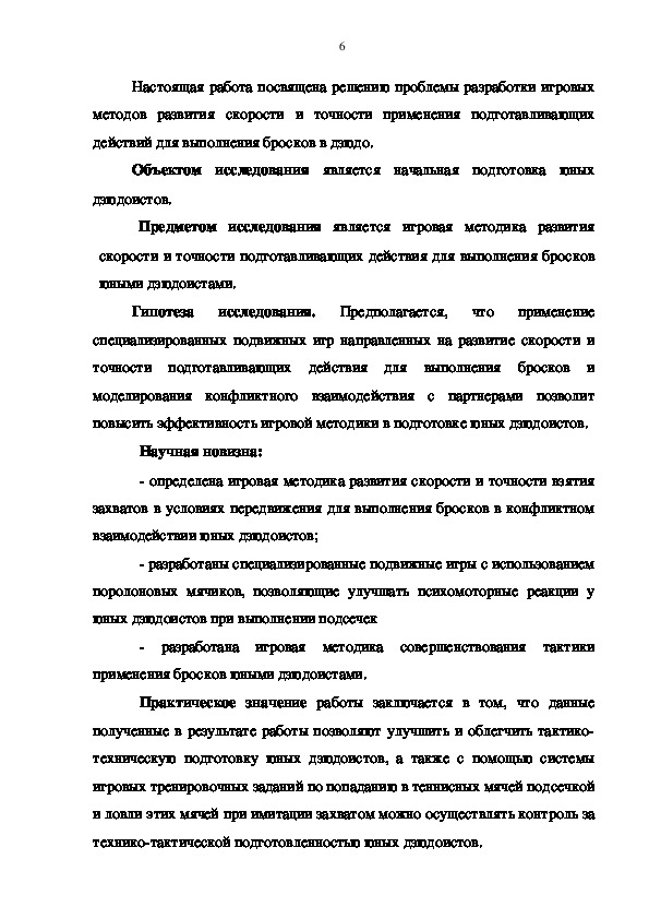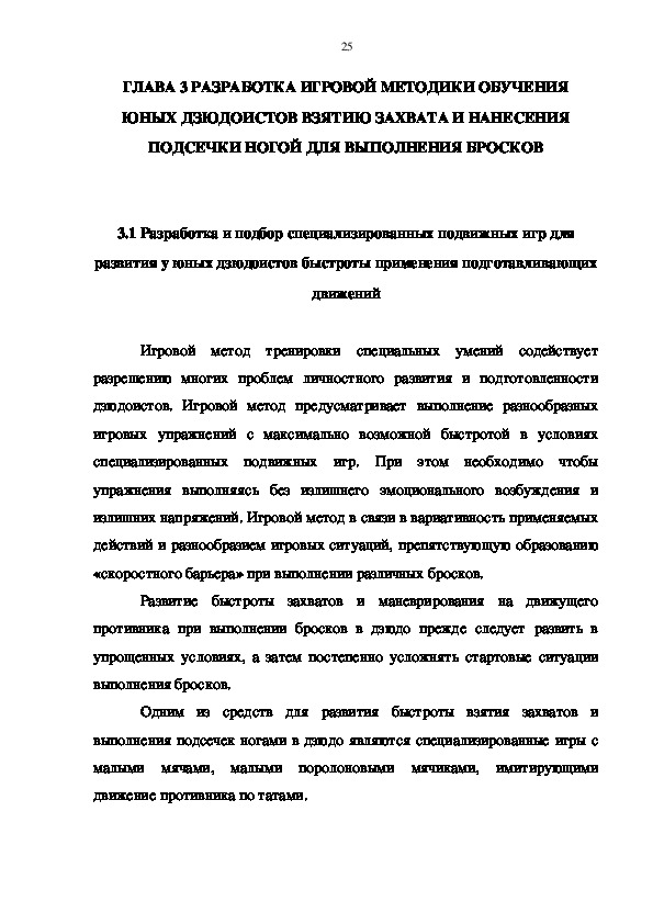 разработки игровых методик для развитие у юных дзюдоистов скорости и