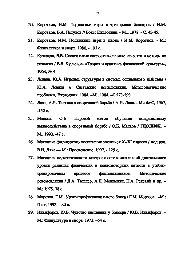 20. Коротков, И.М. Подвижные игры в тренировке боксеров / И.М.