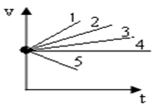 6. Суретте бес дененің жылдамдық модульдерінің уақытқа тәуелділік графиктері көрсетілген. Бірқалыпты кемімелі қозғалысқа қай график сәйкес келеді?