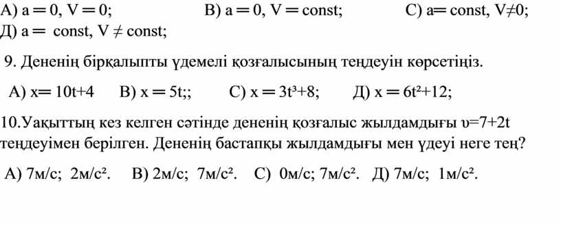 9. Дененің бірқалыпты үдемелі қозғалысының теңдеуін көрсетіңіз.