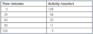11 The table shows how the activity of a sample of a radioactive substance changes with time.