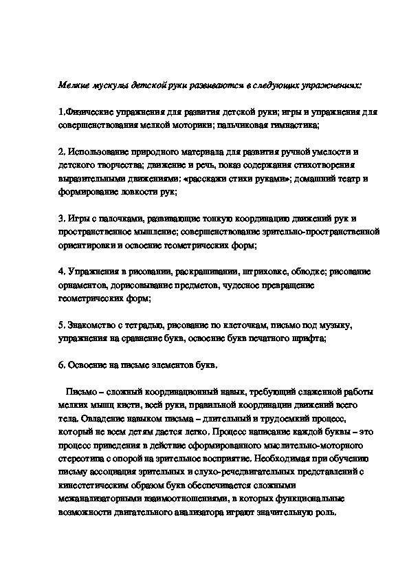 1.Физические упражнения для развития детской руки; игры и упражнения для