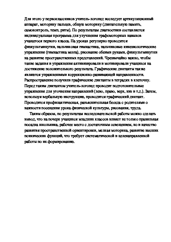 вывод, что на почерк учащихся младших классов влияет не только правильная