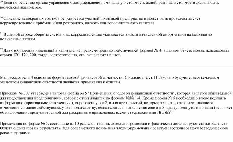 Приказом № 302 утверждена типовая форма № 5 "Примечания к годовой финансовой отчетности", которая является обязательной для представления предприятиями, которые отчитываются по формам №№ 1-4. Кроме формы № 5 необходимо также подавать информацию (произвольно изложенную), определенную п.2, а для предприятий, которые делают достоянием гласности отчетность согласно действующему законодательству, обязателен для выполнения еще и п.3 вышеупомянутого приказа (речь идет об информации, предусмотренной для раскрытия в примечаниях всеми утвержденными П(С)БУ).