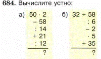 33. 30:3-5+2∙8; 34. 59+(50:5-3)∙3; 35. (96-8∙7):(6+4); 36. (97-7∙5+28):9; 37. 99-(3+2)∙8:4; 38. 19+(10∙9-80):5; 39. 36:4+65-5∙4; 40. (7+9∙7):(53-46); 41. 16:4∙(57+25-79); 42. (∙8-27+43):6; 43. 36:(27-18)+3∙3; 44. 72:(5∙5+19-36); 45. 8+18:2∙(45-37); 46. 70-(8∙2+4):4; 47. 5∙3+75-45:5; 48. 64:(2∙4)-3+37; 49. (51-6∙7):3+78; 50. (75-19):(2+3∙2); 51. 6∙8-25+14:2; 52. 38+46-90:(2∙5); 53. 97-(19+9):4∙2; 54. (14-72:9)∙(2+2) 55. 83-(6+15:5)∙6; 56. (47+6∙6-27):8; 57. 8:2∙9-17+48; 58. 32-(9∙3+8):7; 59. 61-40:(4∙2)+17; 60. 19+(10∙5-42:6); 75. 2∙(45-38)+45:9; 76. 48-27:3+4∙4; 77. (54+24-3∙8):6; 78. 10∙4-(9+9):6; 79. 41-(3∙4:6+21); 80. 27+37-18:9∙10 |