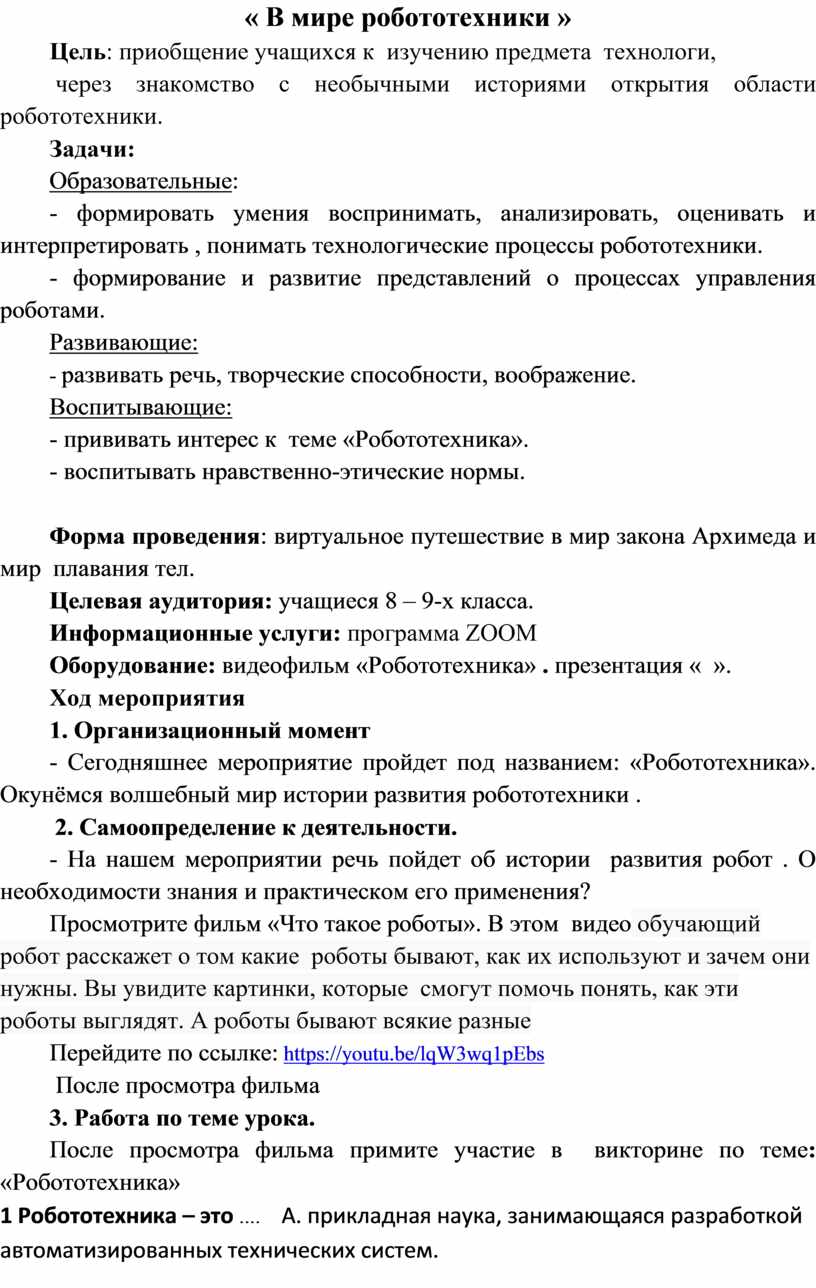 - Сегодняшнее мероприятие пройдет под названием: «Робототехника». Окунёмся волшебный мир истории развития робототехники .