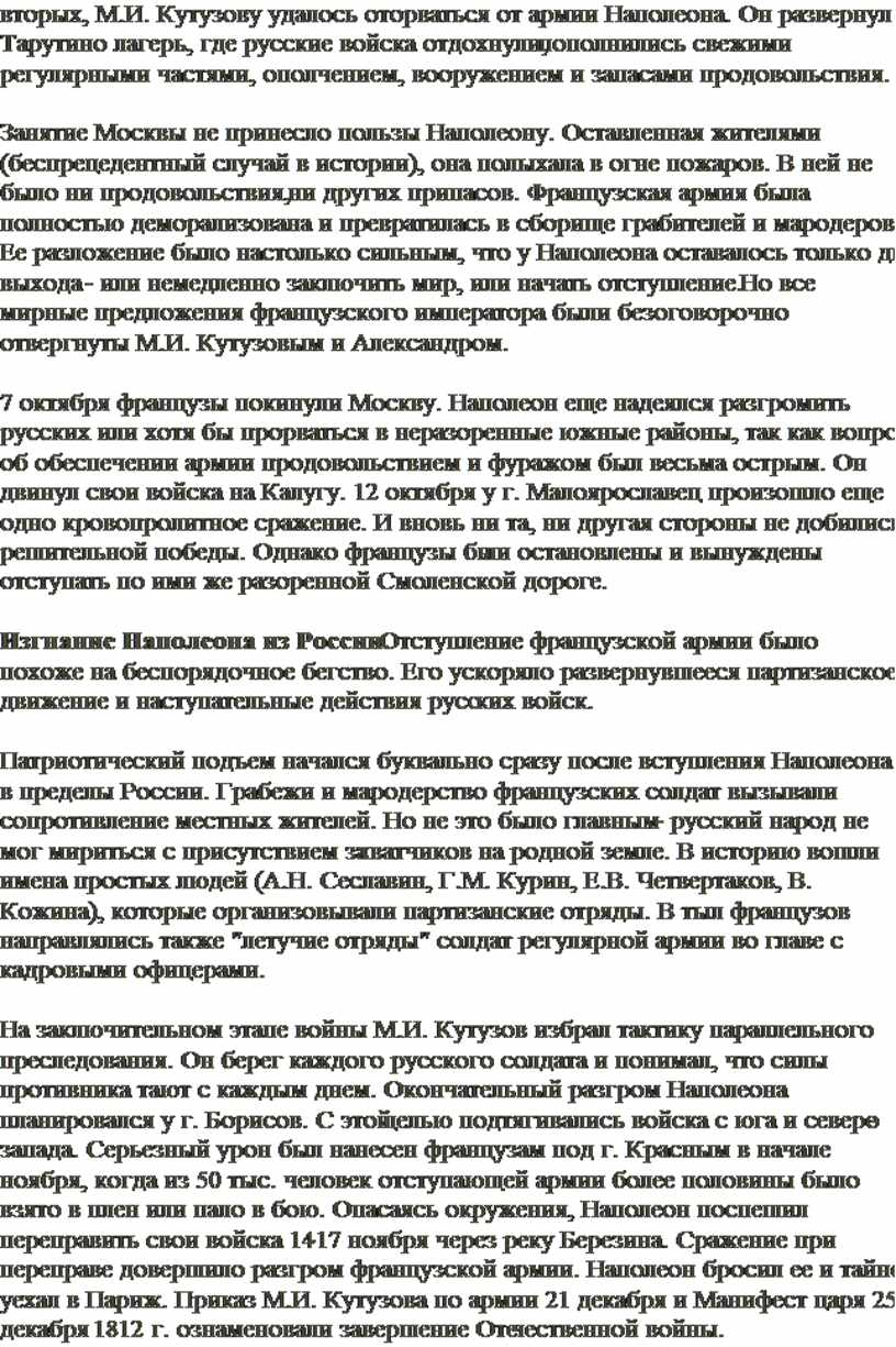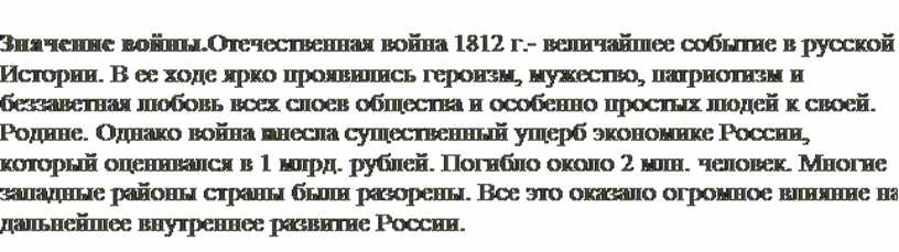 Значение войны. Отечественная война 1812 г. - величайшее событие в