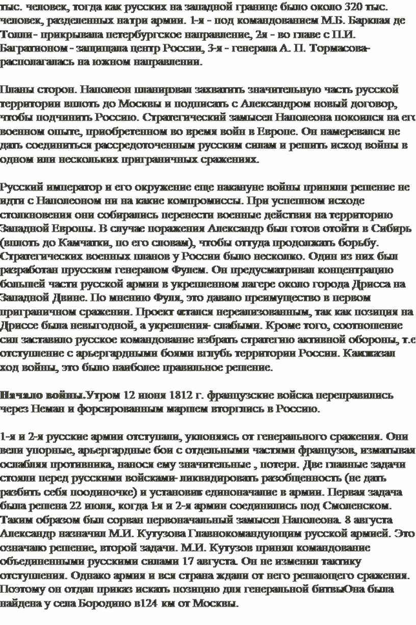 Планы сторон. Наполеон планировал захватить значительную часть русской