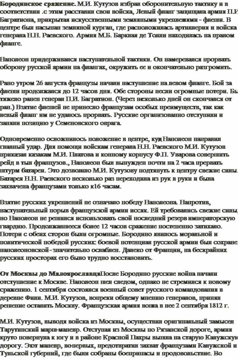сражению. 1 сентября состоялся военный совет русского командования в деревне