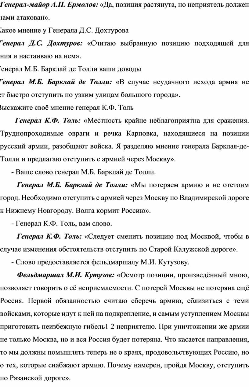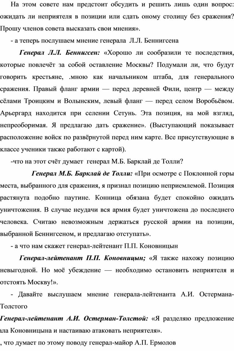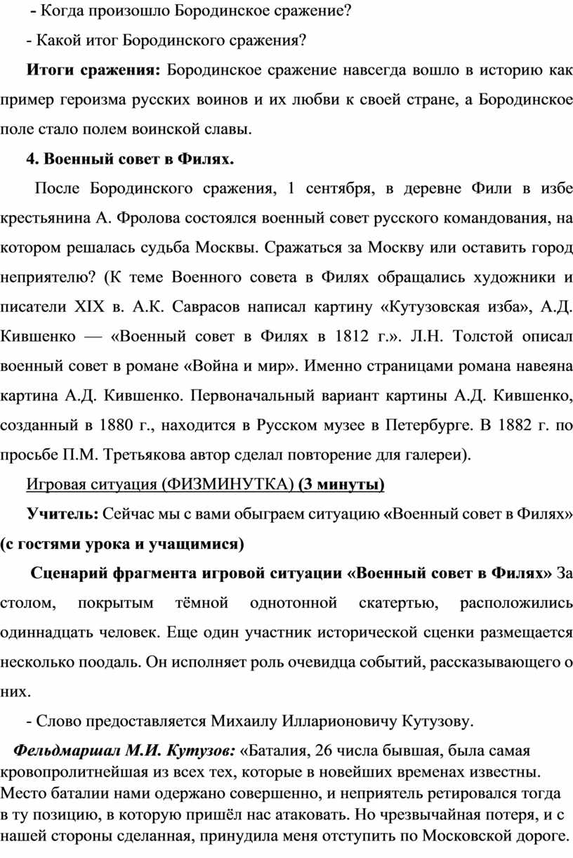 4. Где проходил Военный Совет, на котором было принято решение об оставлении Москвы Наполеону?
