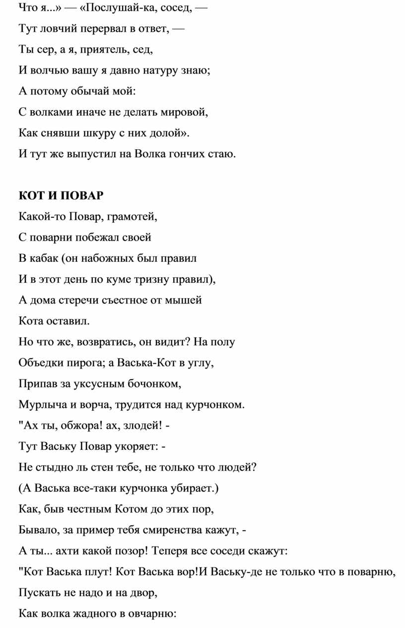 "Кот Васька плут! Кот Васька вор!И Ваську-де не только что в поварню,