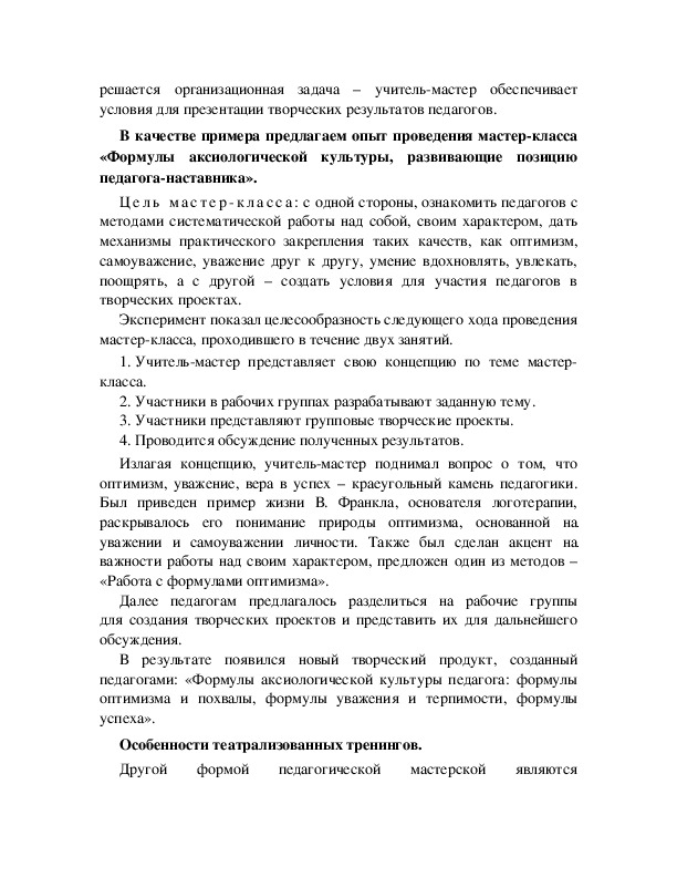 педагогов в ее решение так, чтобы сами педагоги в дальнейшем, работая