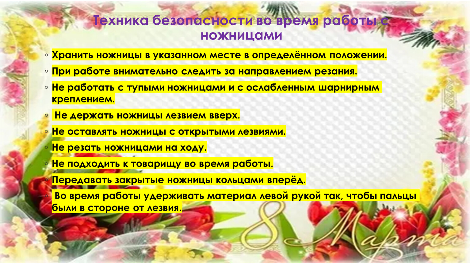 Техника безопасности во время работы с ножницами