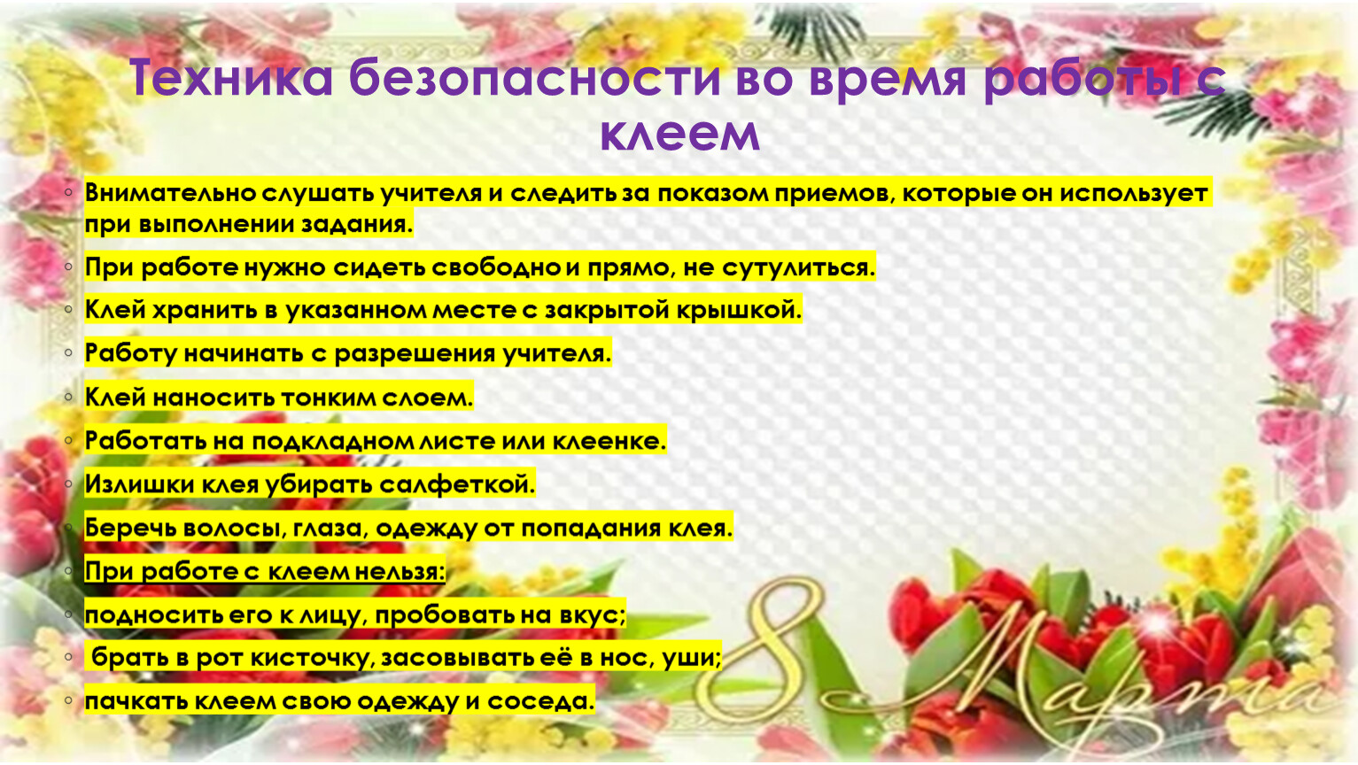 При работе с клеем нельзя: