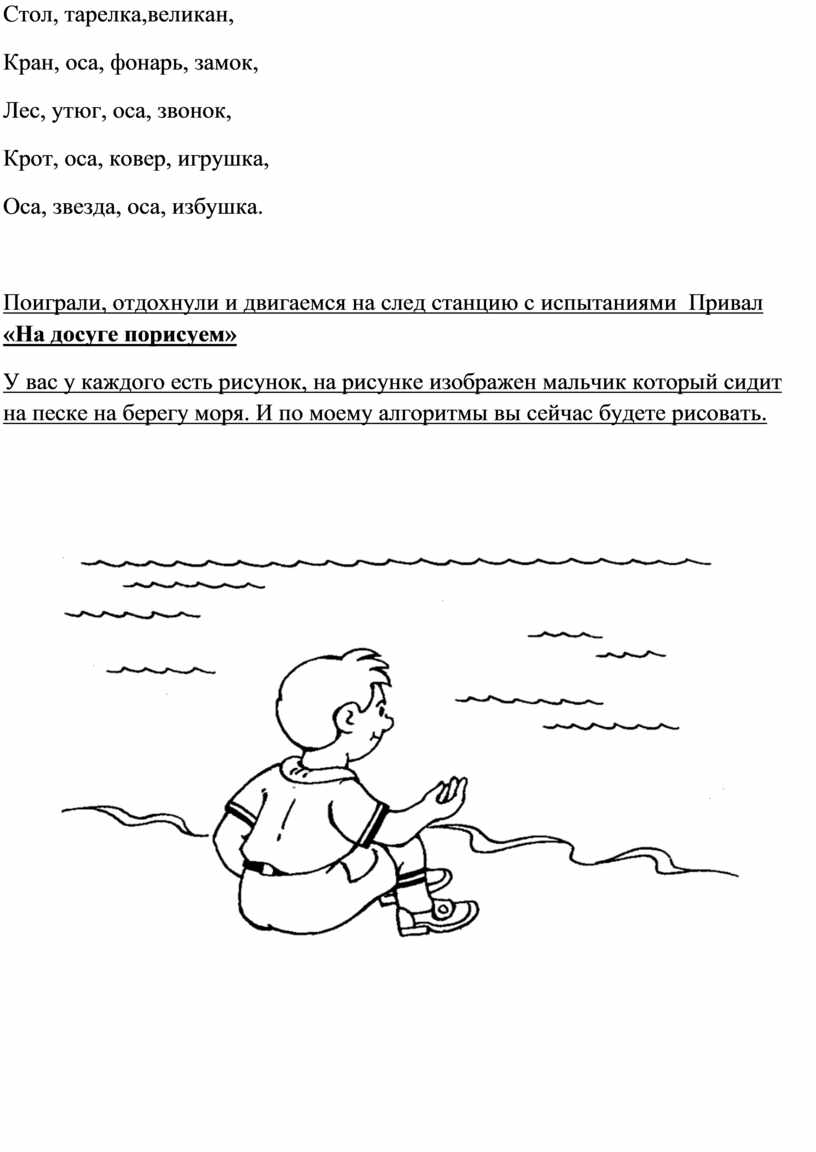 У вас у каждого есть рисунок, на рисунке изображен мальчик который сидит на песке на берегу моря. И по моему алгоритмы вы сейчас будете рисовать.