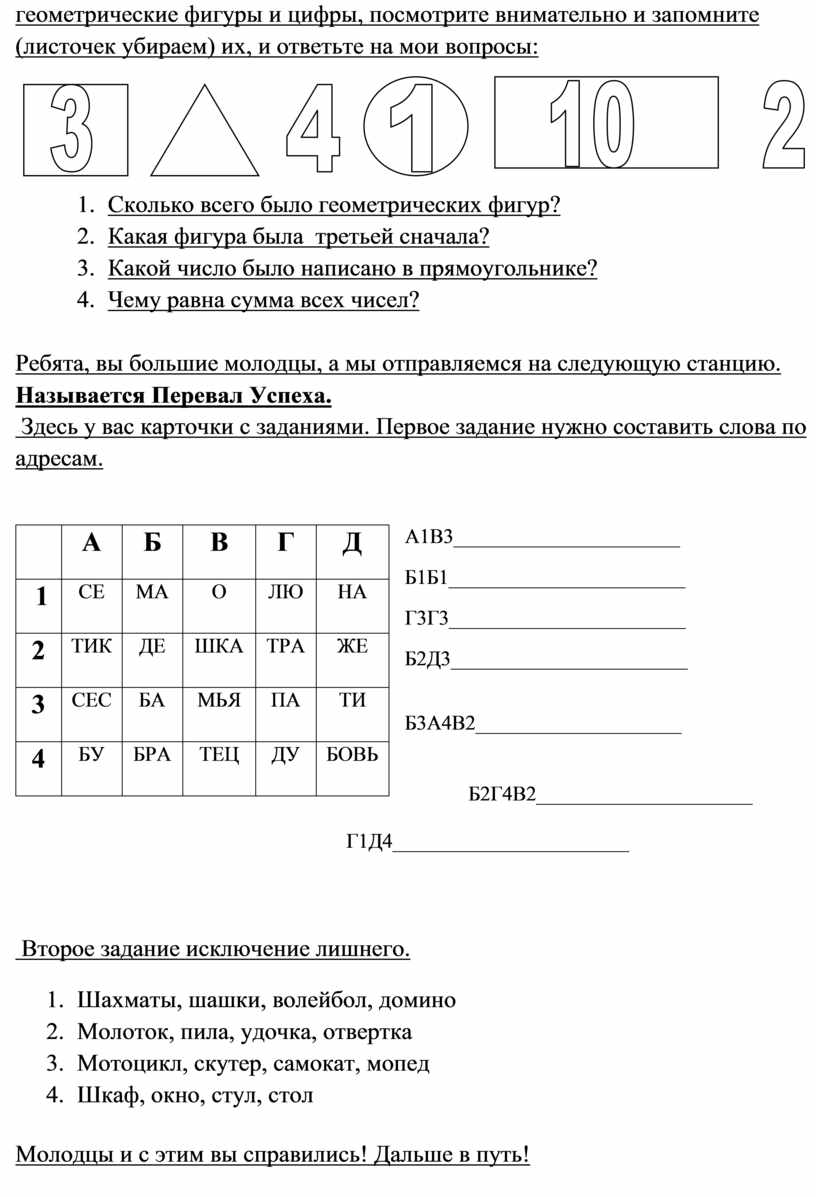 Ребята, вы большие молодцы, а мы отправляемся на следующую станцию. Называется Перевал Успеха.
