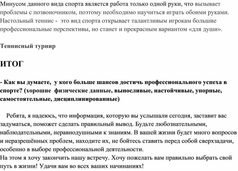 · описать плюсы и минусы карьеры в спорте;