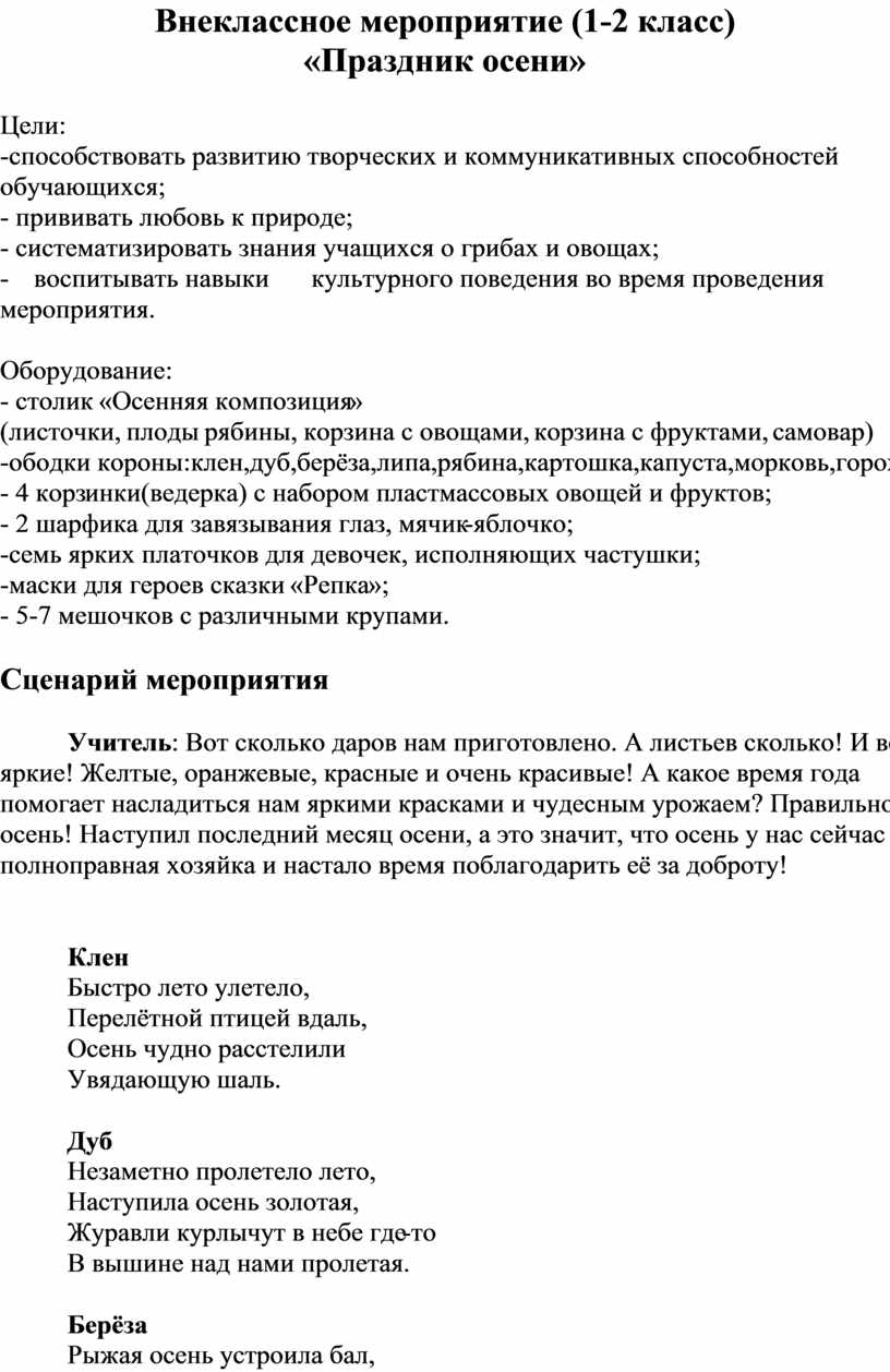 Внеклассное мероприятие (1-2 класс)