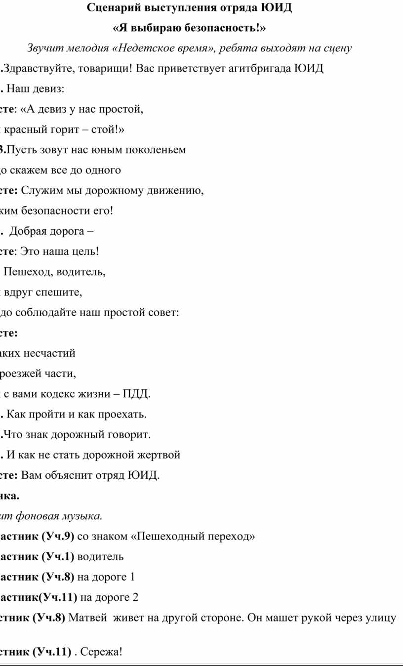 Уч.1.Здравствуйте, товарищи! Вас приветствует агитбригада ЮИД