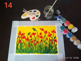 Сейчас мы с вами побудем немного настоящими художниками-живописцами, и попробуем нарисовать прекрасное маковое поле. Для работы нам понадобятся следующие материалы: