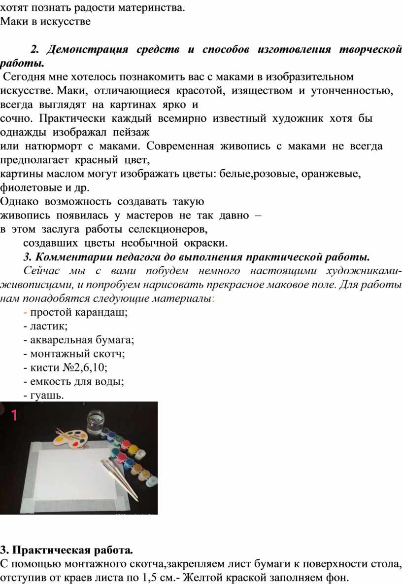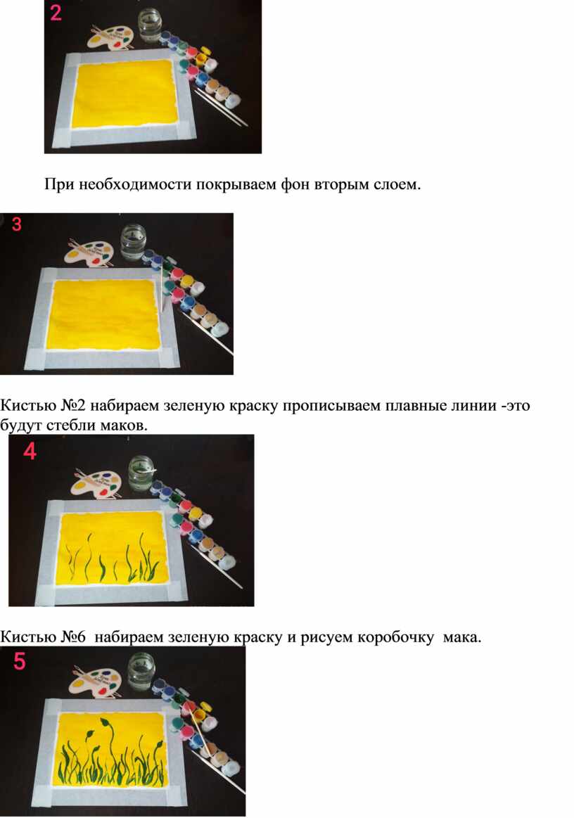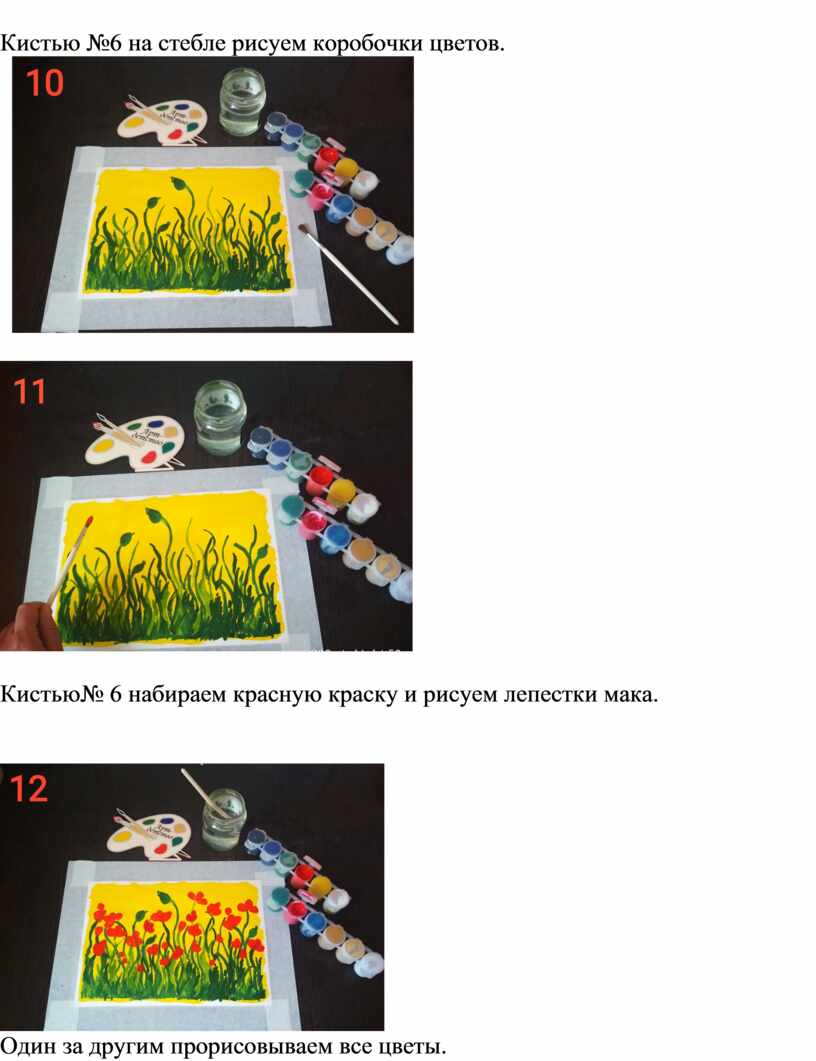 1. учить изображать стилизованные маки в определённой последовательности, знакомить с жанром пейзажа.