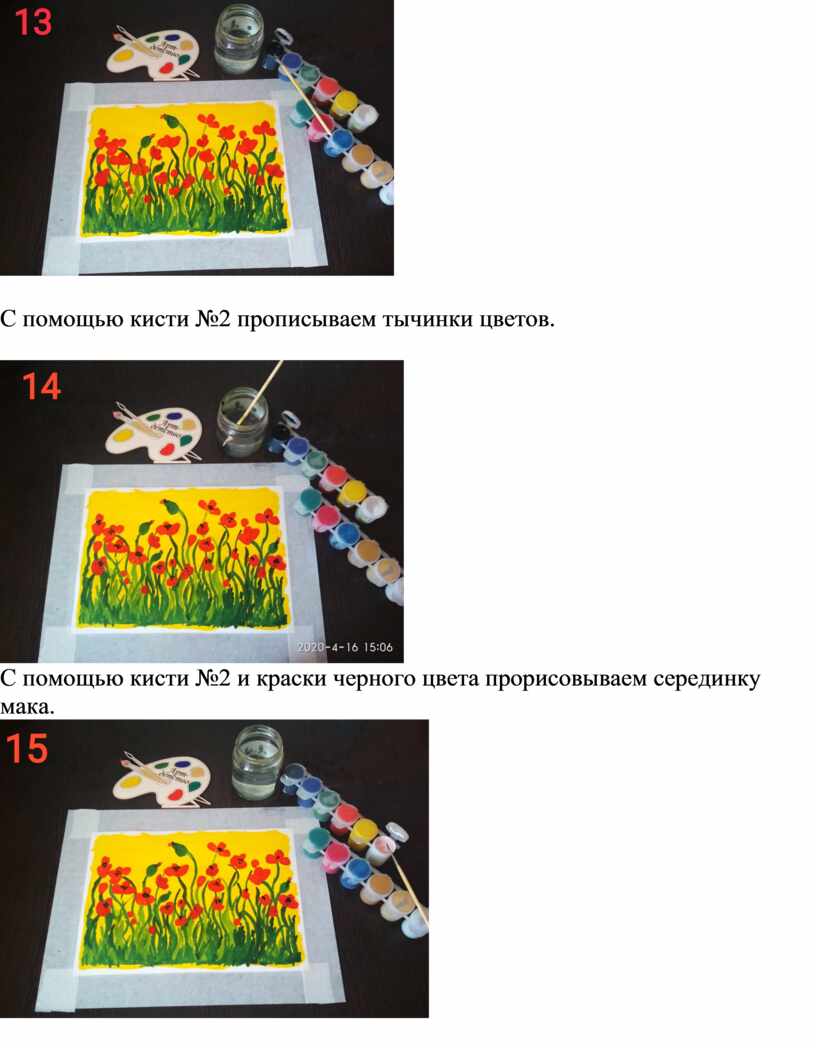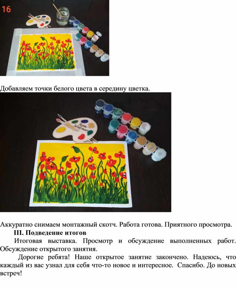 Цель: формировать умение передавать характерные особенности маков и оценивать свою работу.