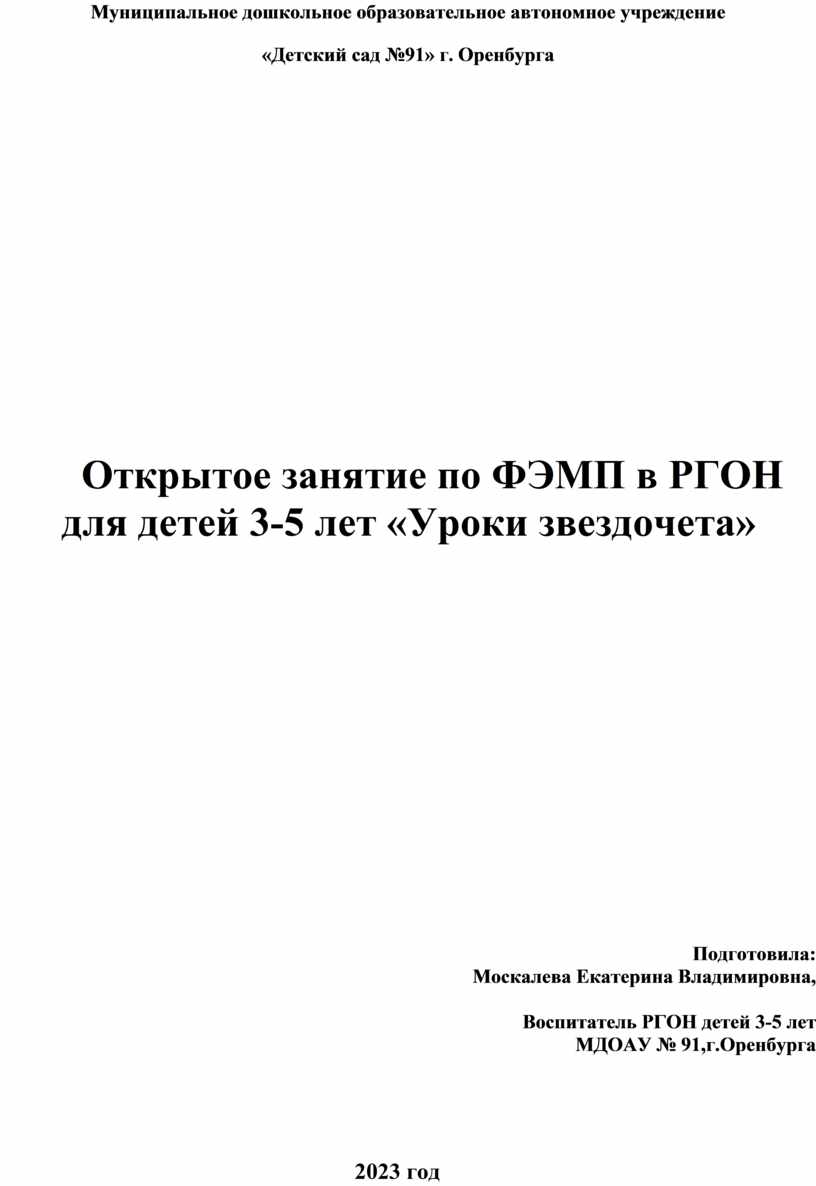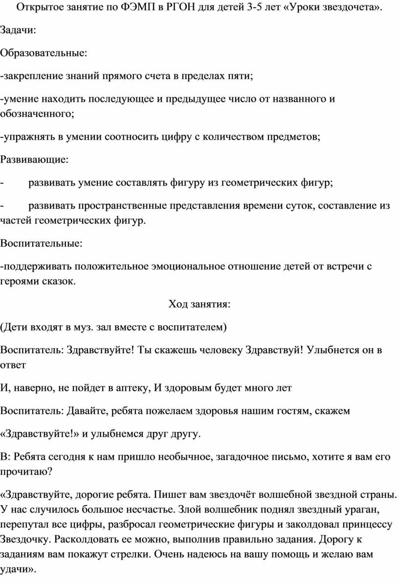 Открытое занятие по ФЭМП в РГОН для детей 3-5 лет «Уроки звездочета».