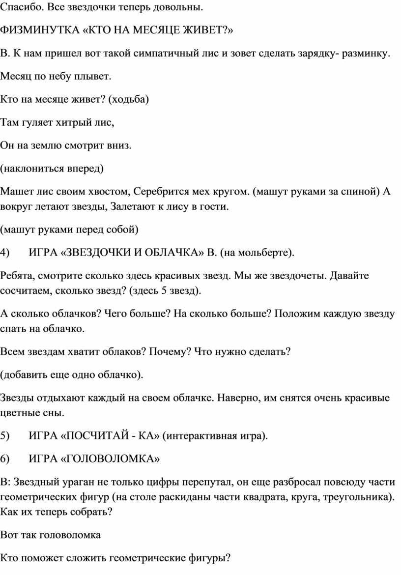 Ребята, смотрите сколько здесь красивых звезд. Мы же звездочеты. Давайте сосчитаем, сколько звезд? (здесь 5 звезд).