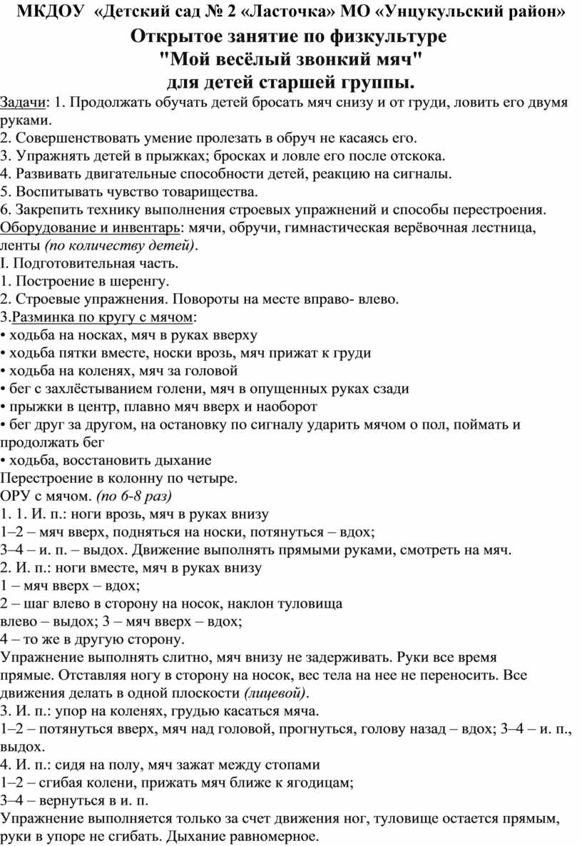 Дети четко перешли от обще-развивающих упражнений к основным движениям. Объяснение и показ обучающих движений было понятным, соответствующим возрасту. Упражнения выполнялись поточно, по группам и фронтально. Осуществлялся контроль выполнения упражнений, страховка, дозировка выдержана. Темп средний. Имело место исправление ошибок и их предупреждение. Использовалось привлечение детей к показу. Дети владеют навыками работы с мячом. Дети оказывали помощь друг другу. Сопереживали, поддерживали товарищей при выполнении движений. Дети проявляли волевые усилия. Несмотря на ошибки, старались правильно выполнить задания.