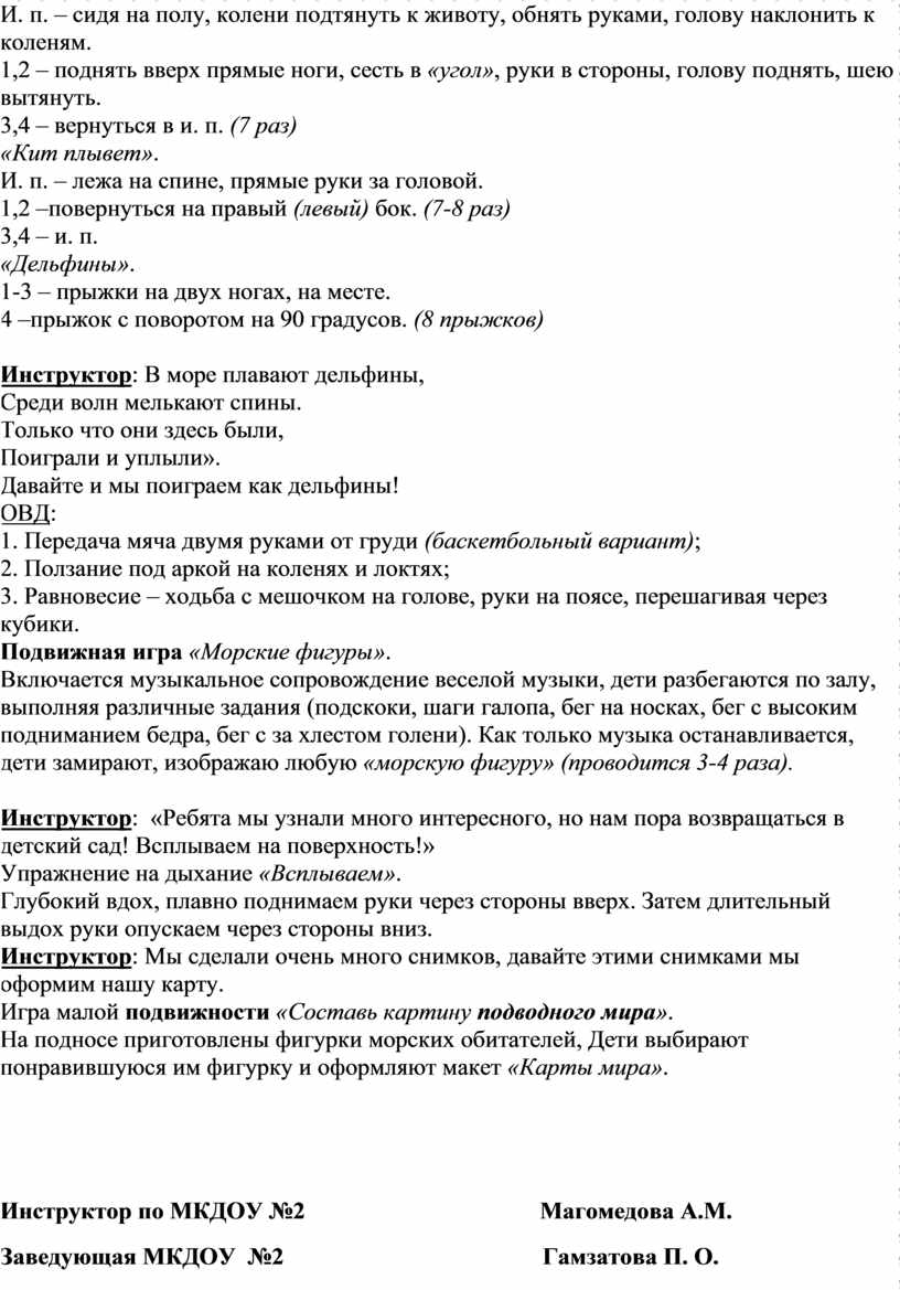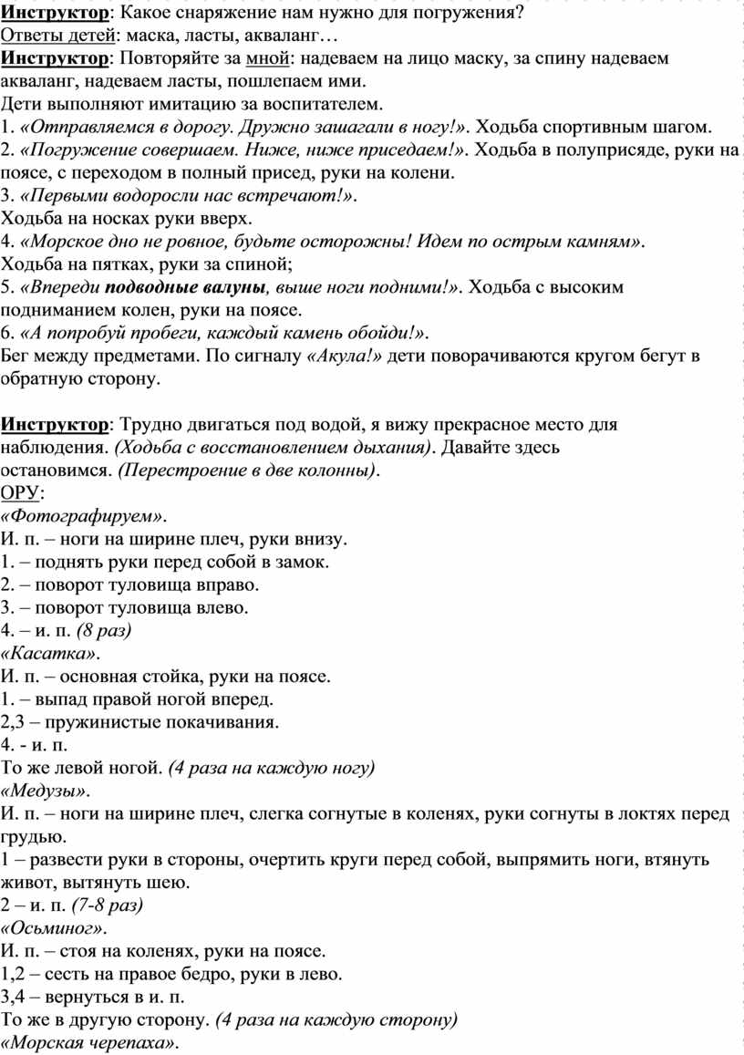 Инструктор: «Ребята мы узнали много интересного, но нам пора возвращаться в детский сад! Всплываем на поверхность!»