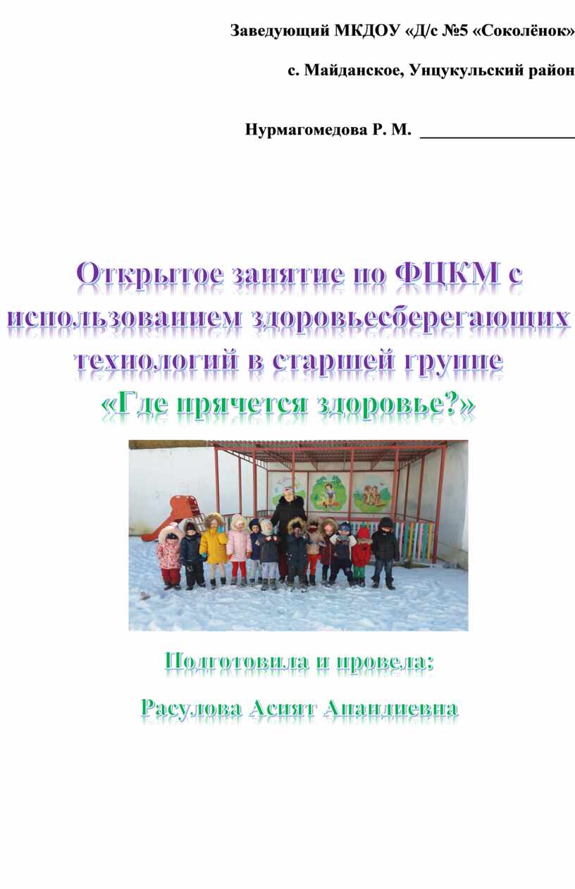 Открытое занятие по ФЦКМ с использованием здоровьесберегающих технологий в старшей группе «Где прячется здоровье?»