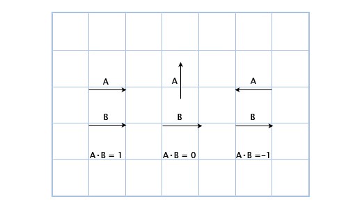 Студентам предлагается продолжить предложение. Если вектора указывают в одном направлении, то их скалярное произведение … (больше нуля). Когда они перпендикулярны друг другу, то скалярное произведение … (равно нулю). И когда они указывают в противоположных направлениях, их скалярное произведение … (меньше нуля).