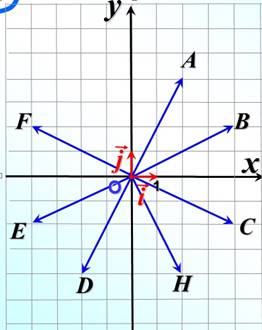 14. Назовите разложение вектора ОЕ по координатным векторам i и j