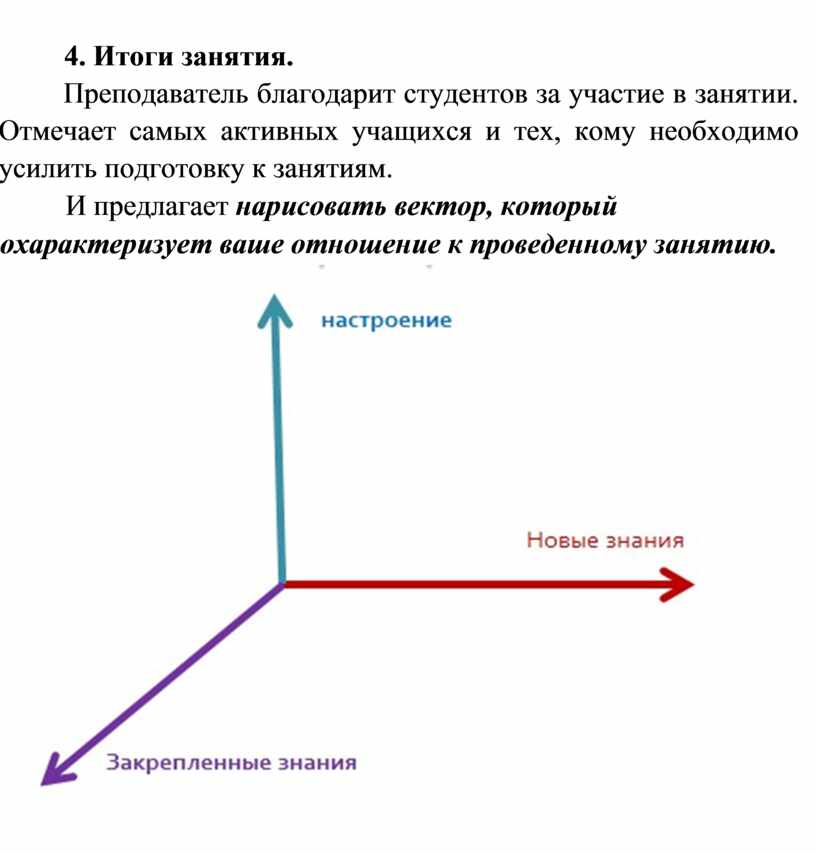 И предлагает нарисовать вектор, который охарактеризует ваше отношение к проведенному занятию.