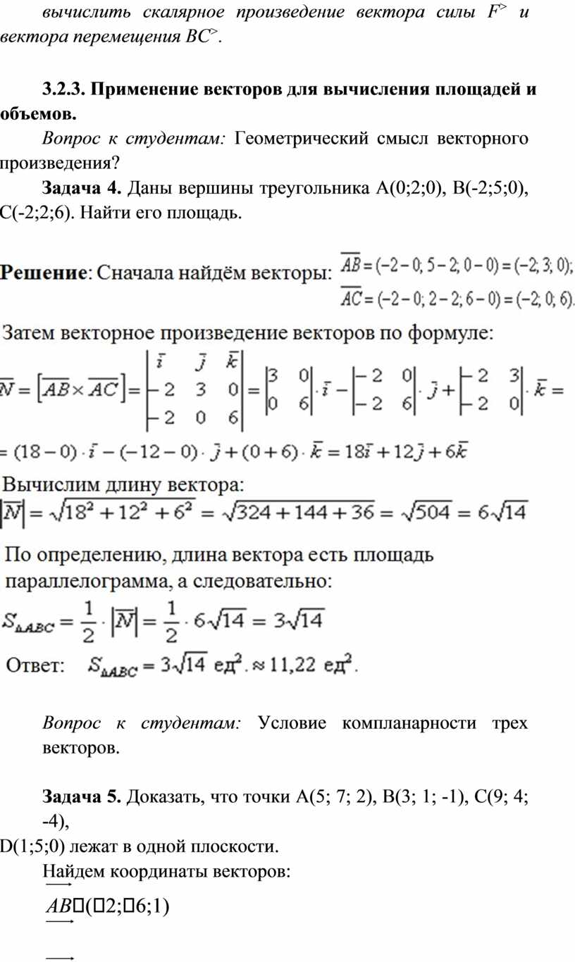 3.2.3. Применение векторов для вычисления площадей и объемов.