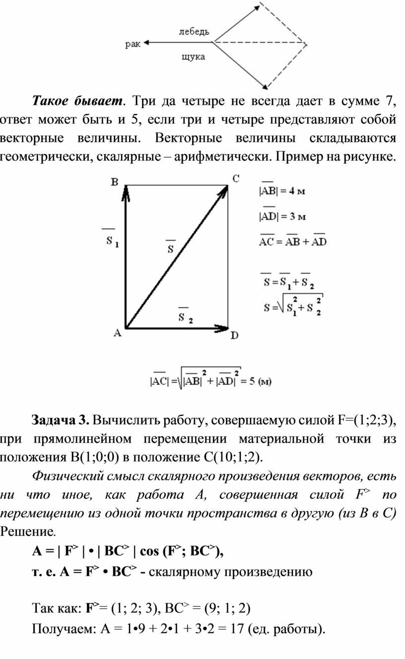 Такое бывает. Три да четыре не всегда дает в сумме 7, ответ может быть и 5, если три и четыре представляют собой векторные величины. Векторные величины складываются геометрически, скалярные – арифметически. Пример на рисунке.