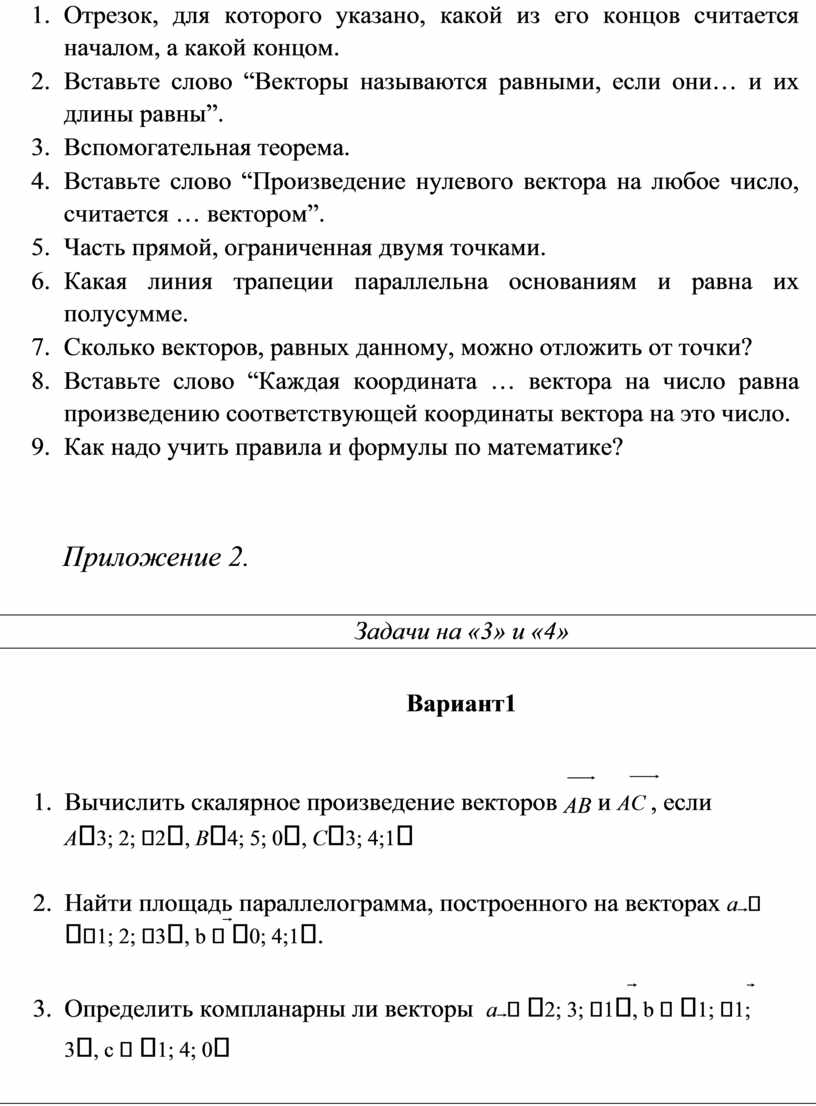 3. Вставьте слово “Векторы называются равными, если они… и их длины равны”.