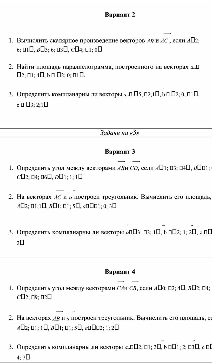 1. Определить угол между векторами САи СВ, если А0; 2; 4, В2; 4; 10, С2; 9; 2