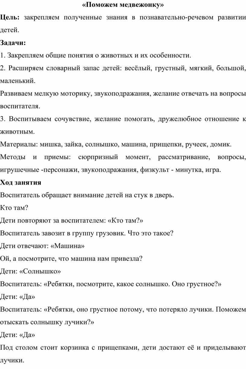 Цель: закрепляем полученные знания в познавательно-речевом развитии детей.