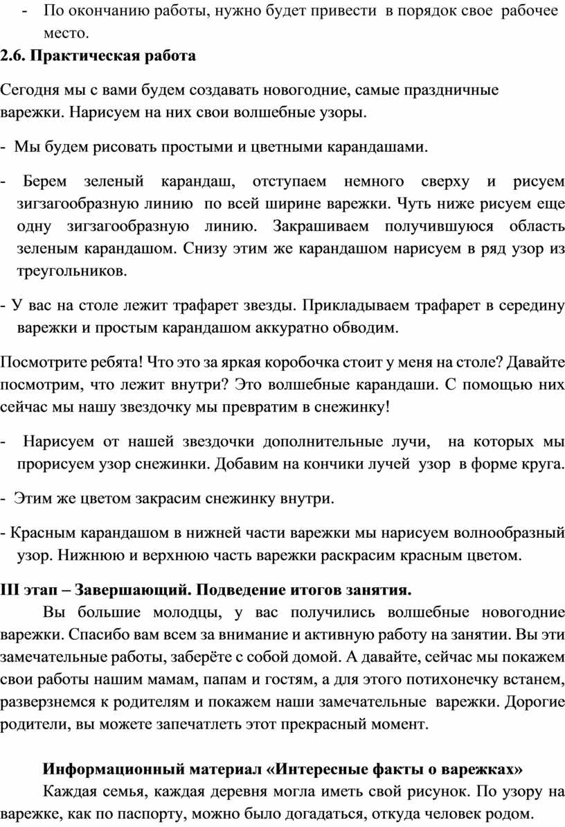 Вы большие молодцы, у вас получились волшебные новогодние варежки. Спасибо вам всем за внимание и активную работу на занятии. Вы эти замечательные работы, заберёте с собой домой. А давайте, сейчас мы покажем свои работы нашим мамам, папам и гостям, а для этого потихонечку встанем, разверзнемся к родителям и покажем наши замечательные варежки. Дорогие родители, вы можете запечатлеть этот прекрасный момент.