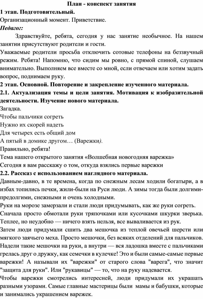 План - конспект занятия