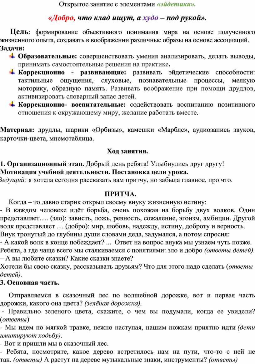 Материал: друдлы, шарики «Орбизы», камешки «Марблс», аудиозапись звуков, карточки-цвета, мнемотаблица.