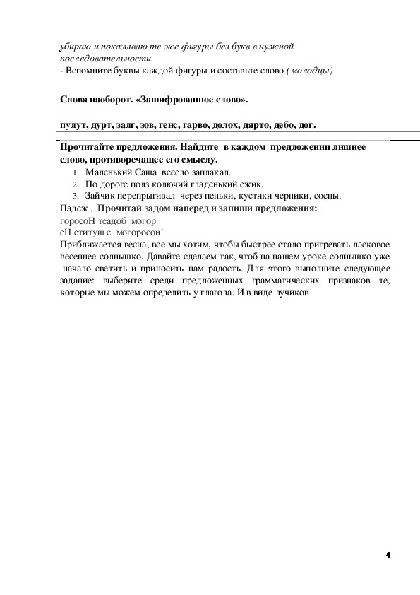 листок со словами проверяют, правильно ли зачеркнуто лишнее слово, т. к.