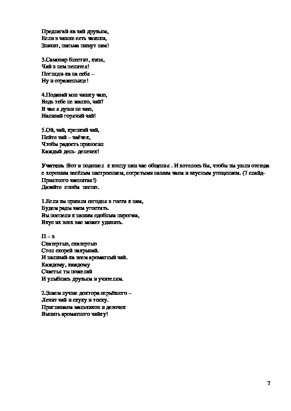 Пока вы готовите проект, девочки споют нам чайные частушки.