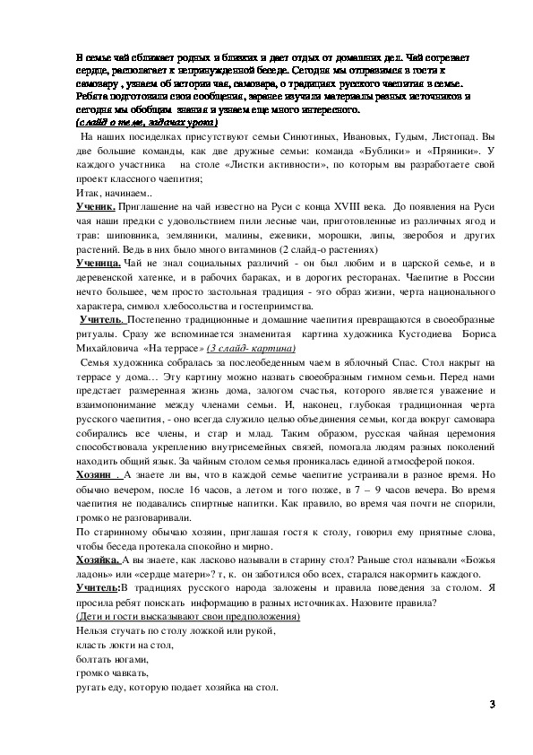 2В семье чай сближает родных и близких и дает отдых от домашних дел. Чай согревает