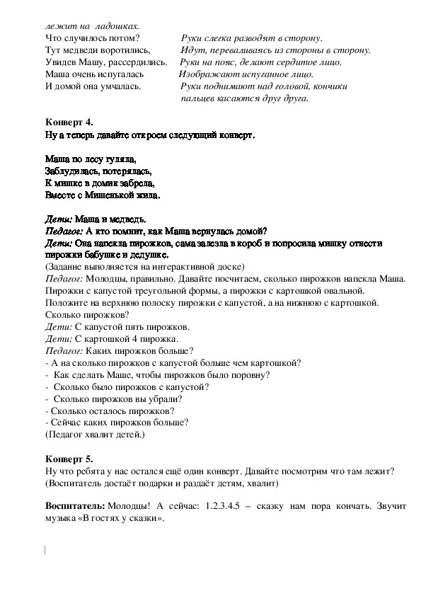 Педагог: А кто помнит, как Маша вернулась домой?