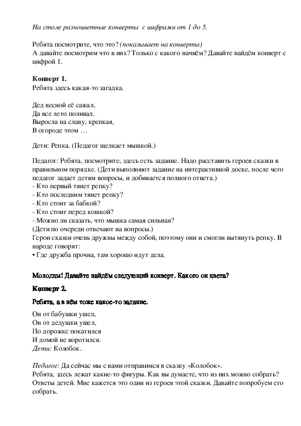 Волшебная музыка и голос (сказка, сказка…..)На столе разноцветные конверты с цифрами от 1 до 5.