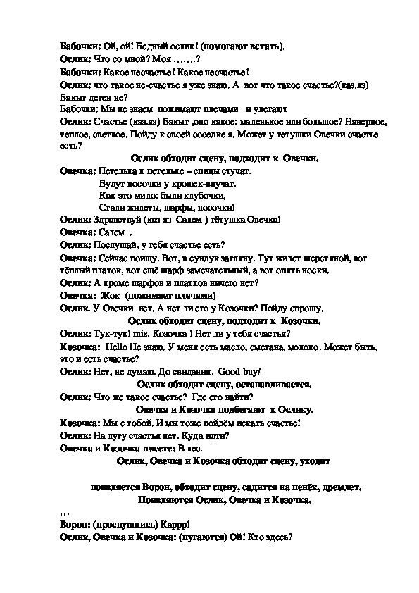 Ослик: что такое несчастье я уже знаю. А вот что такое счастье?(каз.яз)