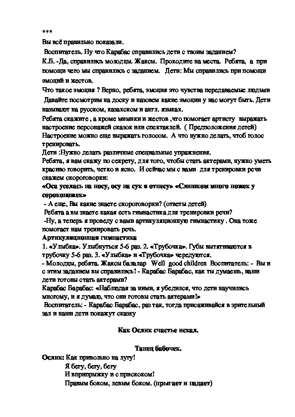 Воспитатель: Карабас Барабас, раз так, тогда присаживайся в зрительный