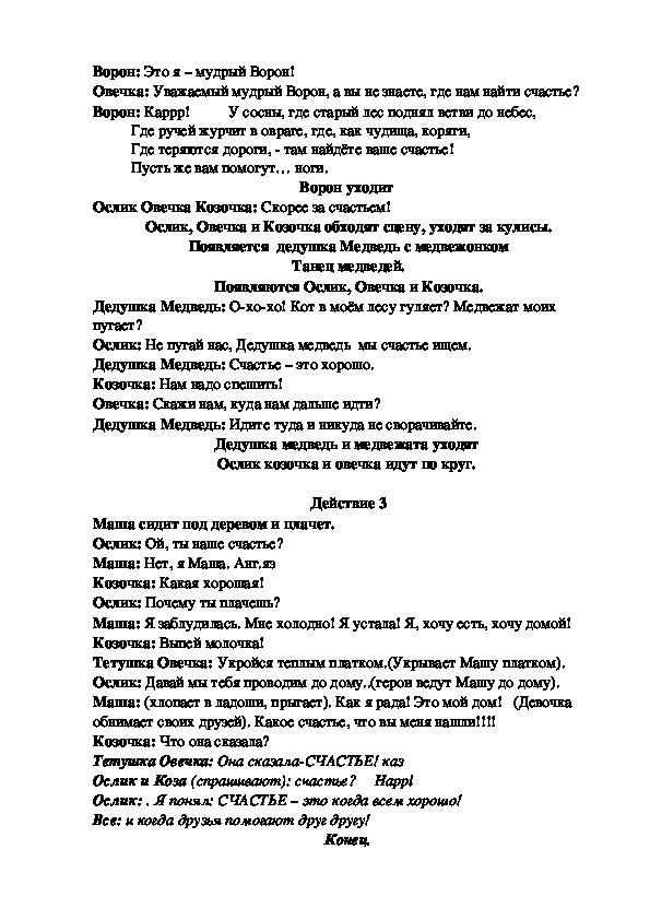 Ослик, Овечка и Козочка: (пугаются) Ой! Кто здесь?Ворон: Это я – мудрый Ворон!